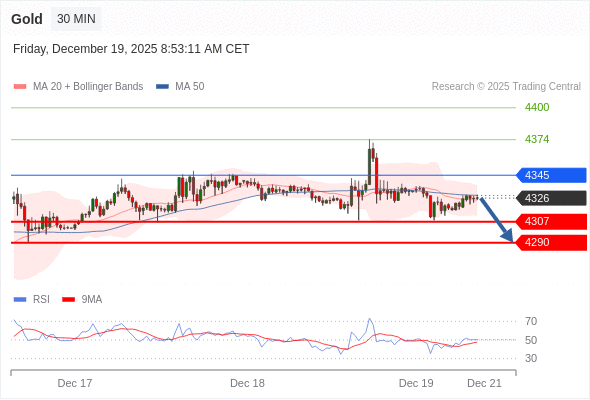 在 4345 之下,看跌,目标价位为 4307 ,然后为 4290 。