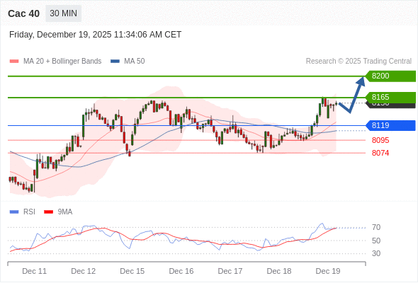 在 8119 之上,看涨,目标价位为 8165 ,然后为 8200 。