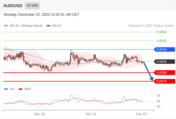 在 0.6630 之下,看跌,目标价位为 0.6590 ,然后为 0.6575 。
