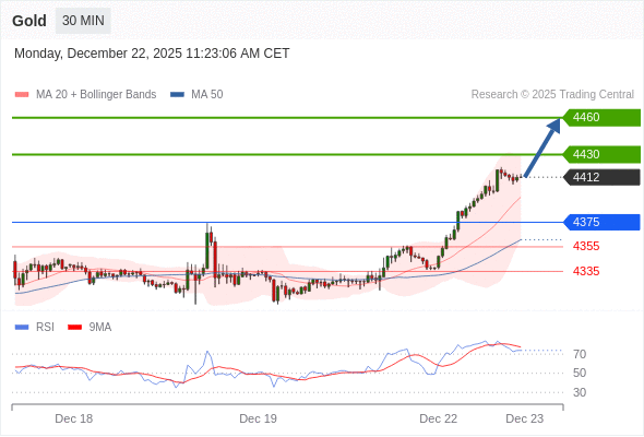 在 4375 之上,看涨,目标价位为 4430 ,然后为 4460 。