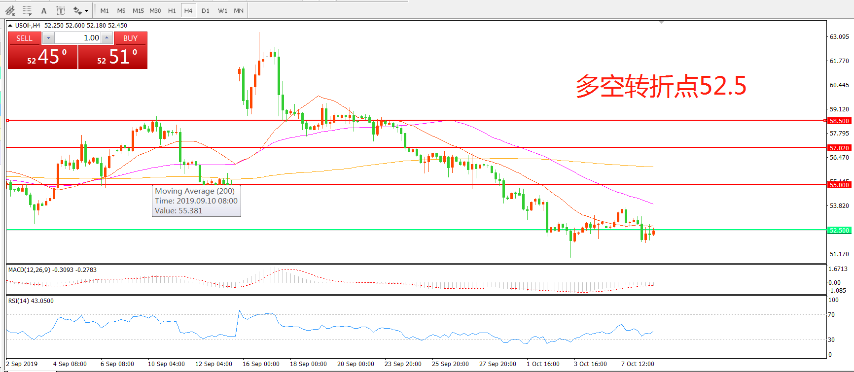 周二(10月8日)美国商务部将28家新公司和机构列入“黑名单”,其中主要包括专攻人工智能、机器学习和数字监控的企业,中国商务部表示中方也将采取一切必要措施,坚决维护中方自身利益。贸易谈判的不确定性令市场上的风险情绪受到抑制, 美国WTI原油周二震荡收跌,最终收报52.48美元/桶。