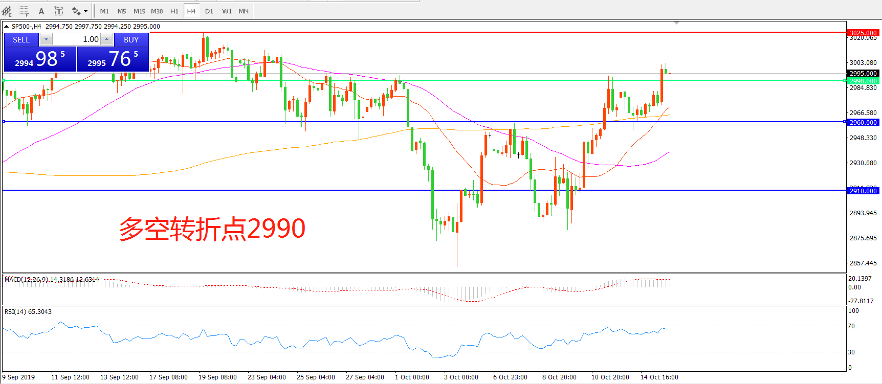 多空转折点:2990.00