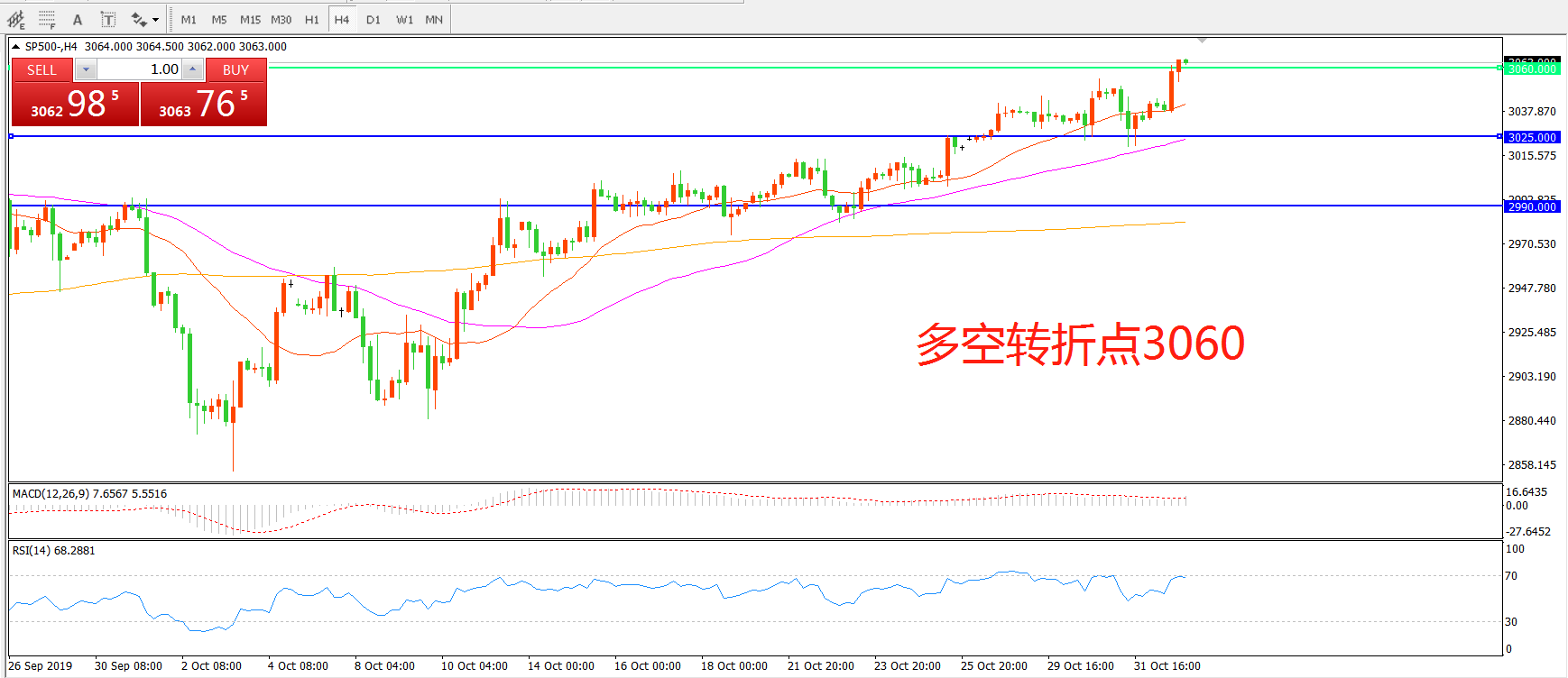 周五(11月1日),美国劳工部公布公告称,美国10月非农就业人口增加12.8万,远超预期的8.5万。达拉斯联储总裁罗伯特-卡普兰认为,就业报告表现“非常强劲”,已经达到或超过充分就业。全球贸易利好消息及强劲非农数据提振,美股大幅收涨,标普500强势拉升,收报3062.98点。目前标普500已连续四周连涨,创2月25日以来最长连涨周期。现在的美股已经进入一个极其微妙的时刻,企业盈利一直在下滑,回购速度也在放缓,但大盘却一直涨涨涨,重点关注美联储后期政策动向。