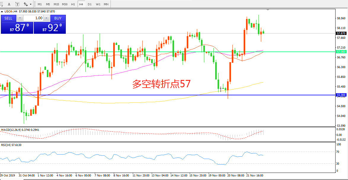 交易策略:在57.00 之上看涨,目标58.50      60.50