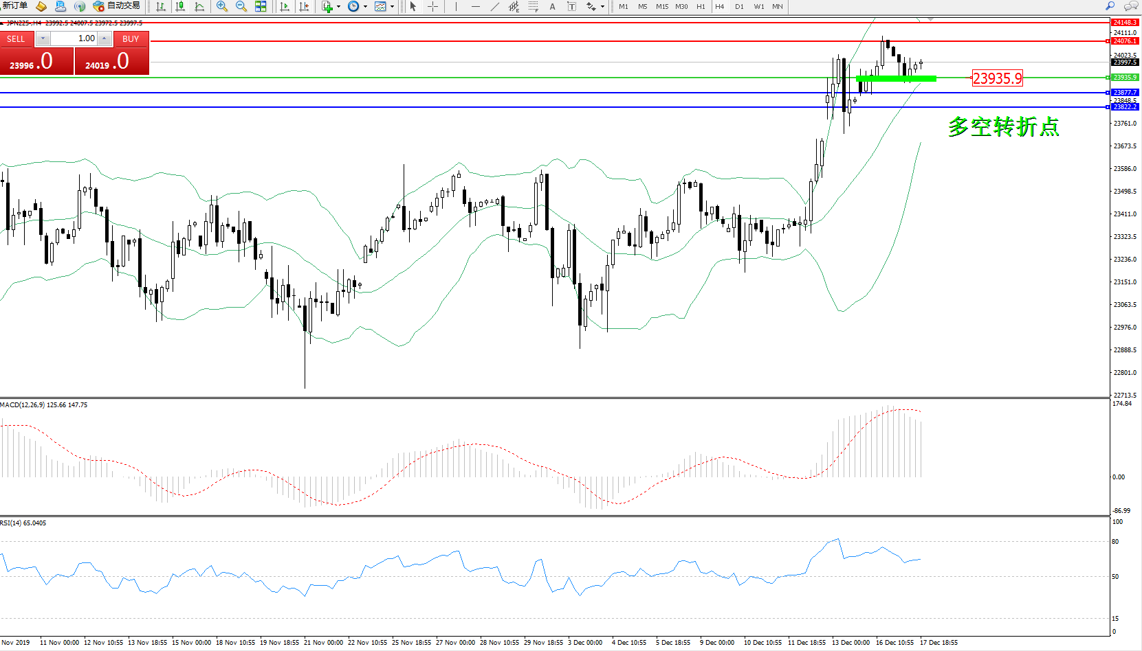 日经指数JPN225——4小时K线图: