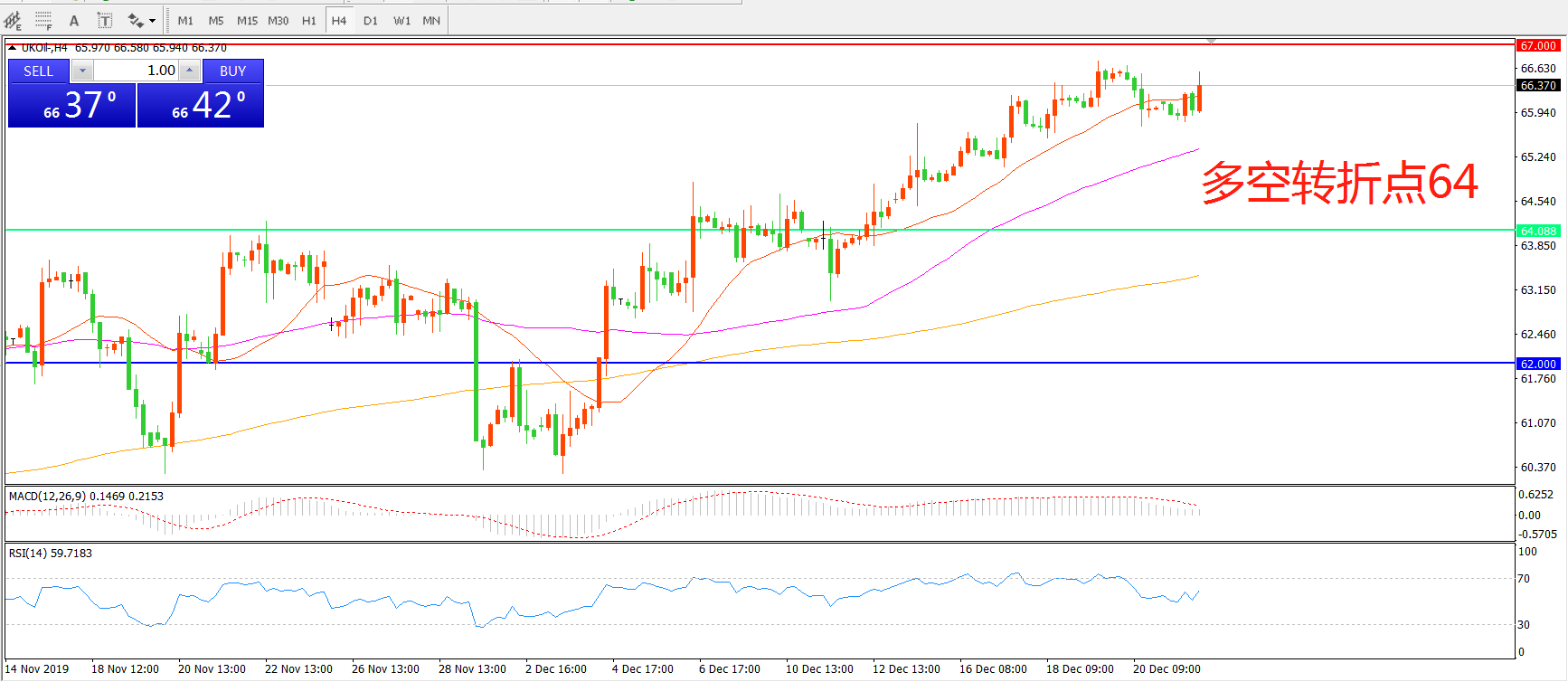 交易策略:在64.00之上看涨,目标67.00    69.50