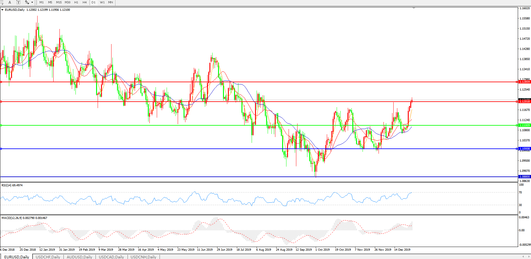 技术面简析:日图均线呈有序多头排列,汇价持续上涨冲击1.12关口并维持在该位置徘徊,MACD再度上行且量能快速放量 ,RSI震荡走升,预计汇价大概率将进一步上行,重点关注1.12关口的短期争夺。