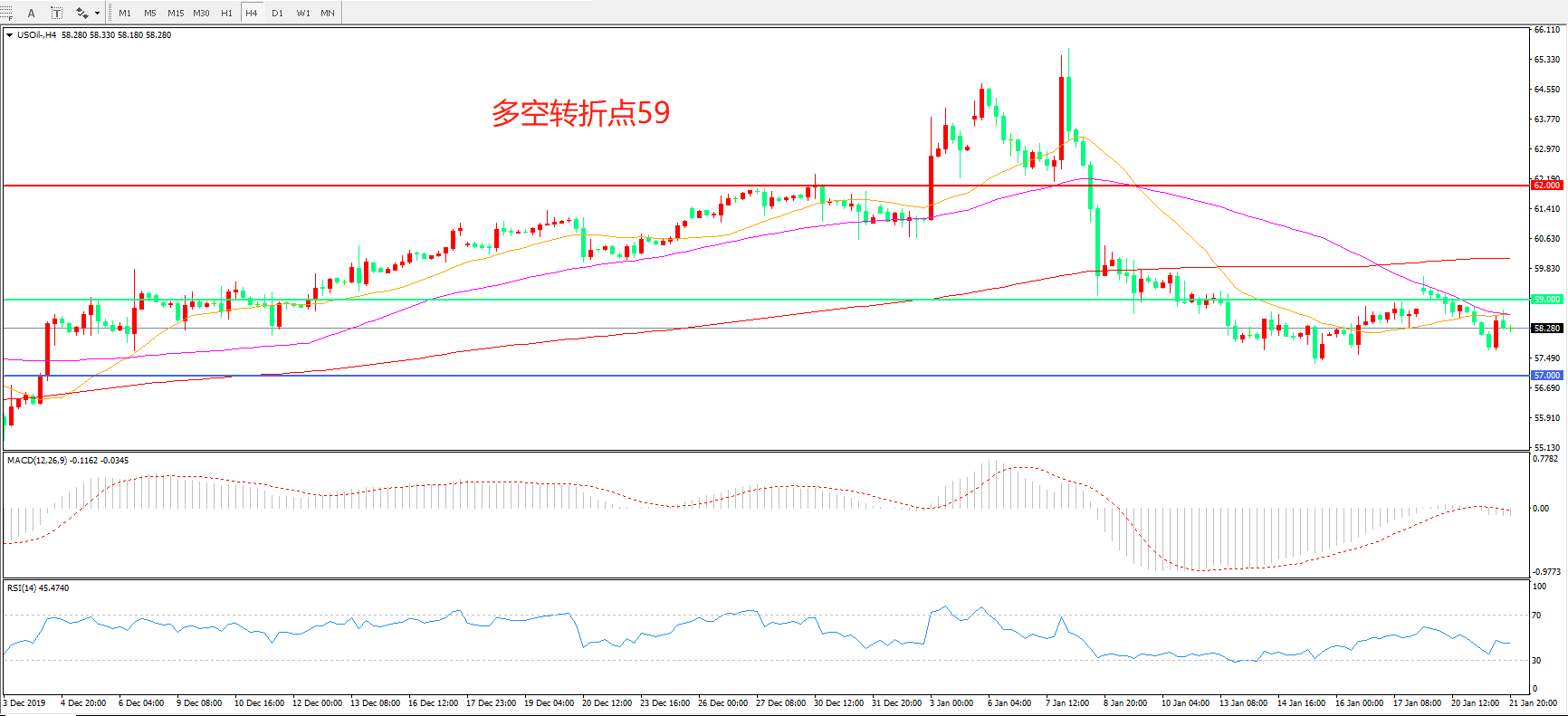 周二(1月21日)因市场预期包括美国增加的产量能够抵消利比亚原油生产中断的影响,美油波幅不大,窄幅震荡后收报58.28美元/桶。此外石油输出国组织(OPEC)周二在最新发布的统计报告中强调,与2018年相比,2019年该组织的原油产量下降了6.3%,降幅约200万桶/日,利好油价。