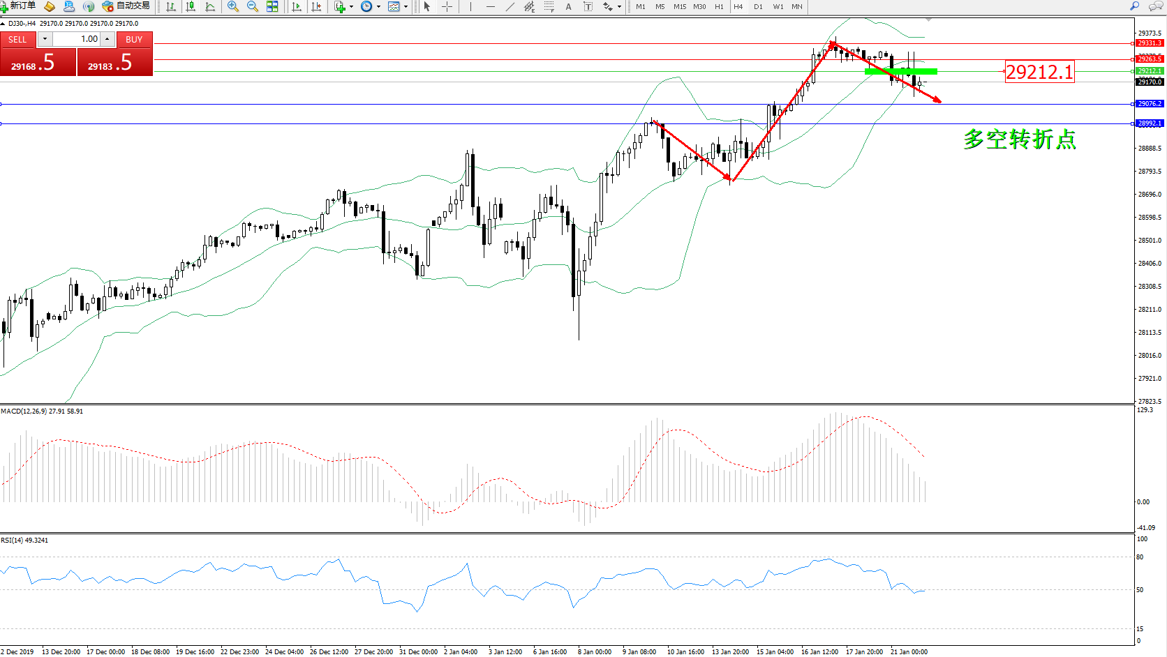 技术点评:高位空头动力开始缓慢下移,触及布林带指标下轨后开始维持在中下轨区间震荡平移中,布林带指标呈收口走势后整理,有持续下移态势,MACD指标多头区域高位震荡下移持续中,RSI指标处于50均衡线附近来回持续徘徊中;