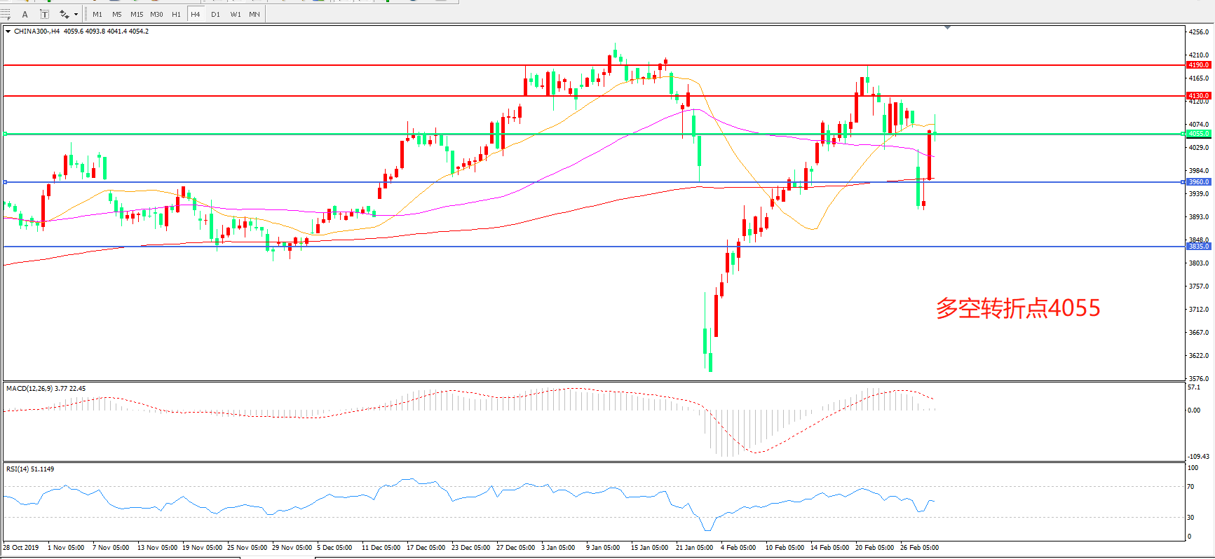 多空转折点:4055.00