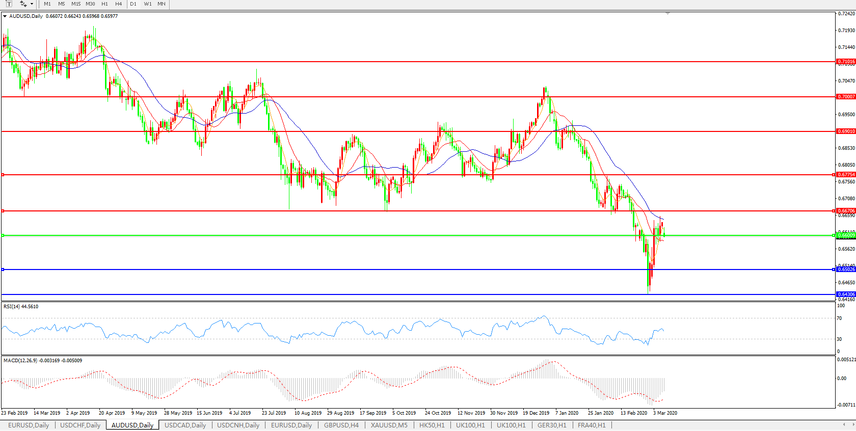 技术面简析:日图均线呈空头排列但短期均线拐头迹象明显,汇价持续走升徘徊在0.66关口附近,MACD于0轴下方逐步止跌且量能收缩,RSI小幅回升后再度承压,预计汇价大概率将延续整理态势。
