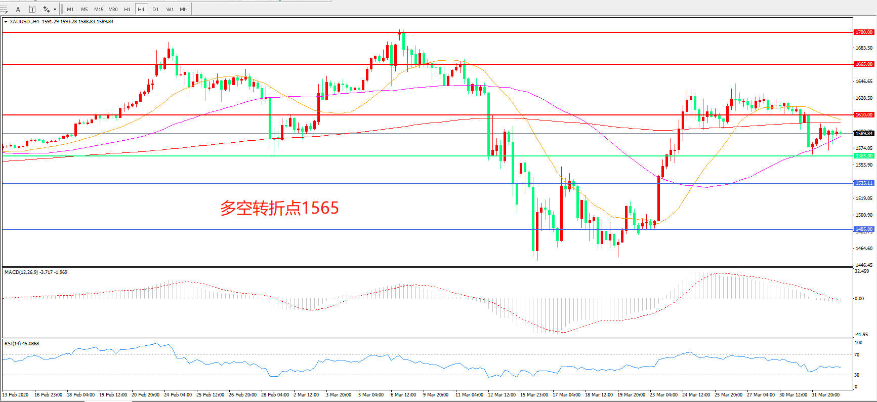 周三(4月1日),美国冠状病毒确诊超20万例,疫情的蔓延推升了市场上的避险情绪,现货黄金一度大涨1.5%,触及1600美元关口,随后小幅回落,收报1591.68美元/盎司。随着疫情对经济的打击陆续浮现,金融市场在未来将再次迎来大幅波动。