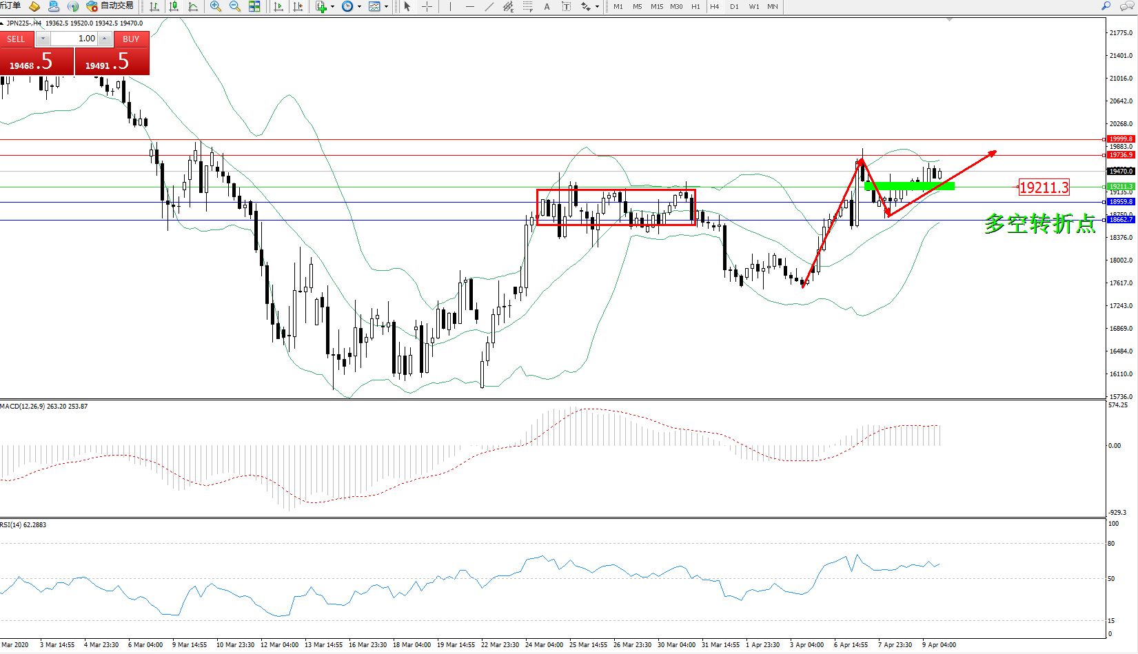 日经225指数4月9日(周四)收盘下跌35.74点,跌幅0.18%,报19317.50点。本央行发布关于地区经济形势的季度樱花报告,下调了对所有9个地区的评估。这是一段时间以来日本银行首次同时下调对所有地区的评估,再次表明冠状病毒正在对日本和其他国家造成广泛破坏。日本央行行长黑田东彦在一次讲话中以对他而言异常激烈的言辞给日本经济拉响了警报,日本的经济严重受损,经济前景极为难料。日本央行此番也有可能像美联储3月份那样根本不发布预期。前日本央行首席经济学家早川英男上周接受采访时说,当前这种形势下太难作出有意义的预期了。