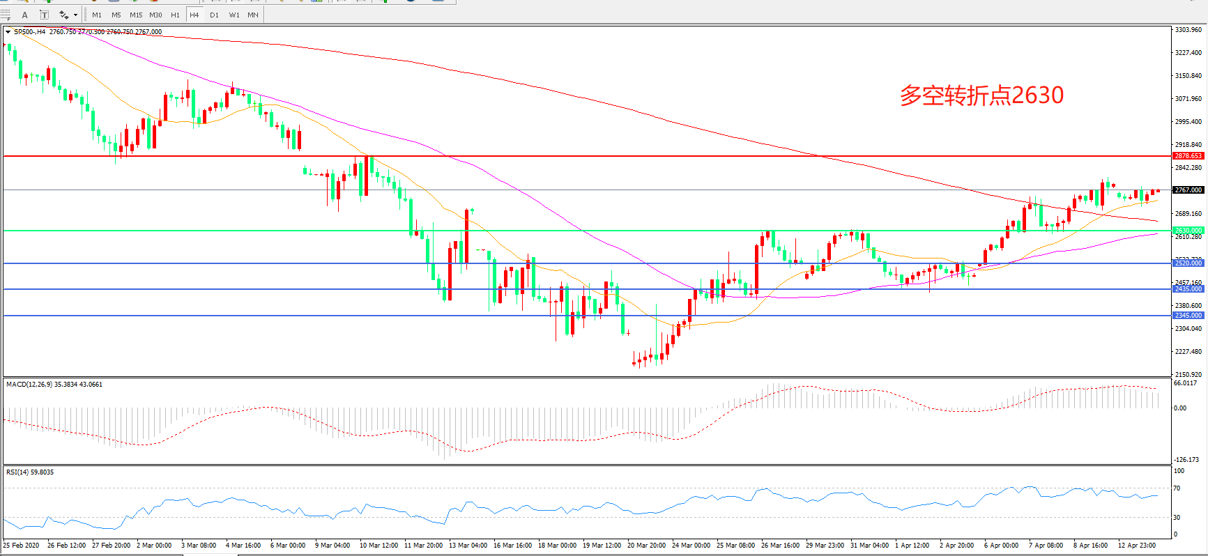 周一(4月13日),美国疫情出现稳定迹象,纽约、新泽西等六个州宣布“协调”措施,将组建特别小组,研究重启经济、开放学校的计划,标普500维持高位震荡,小幅收涨,报2769点。