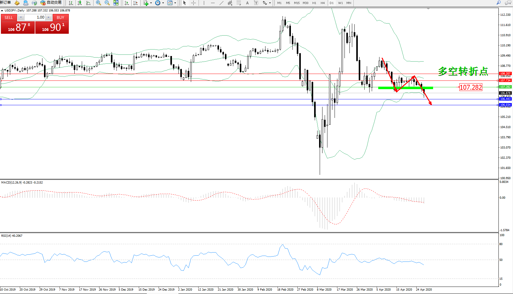 美元兑日元下跌0.35%106.87,创317日以来的六周新低至106.56附近,受益于美元指数的大幅回落,因投资者再度押注美联储可能鸽派行动,此外市场依旧充满不确定性,一方面全球复工的声音越来越广,股票市场有所走高,但另一方面,疫情对经济的冲击可能才开始,复苏之路将较为漫长。美国银行预计在周四的政策会议上,美联储将会发布对美国经济的悲观预估,从而导致资金进入避险货币。