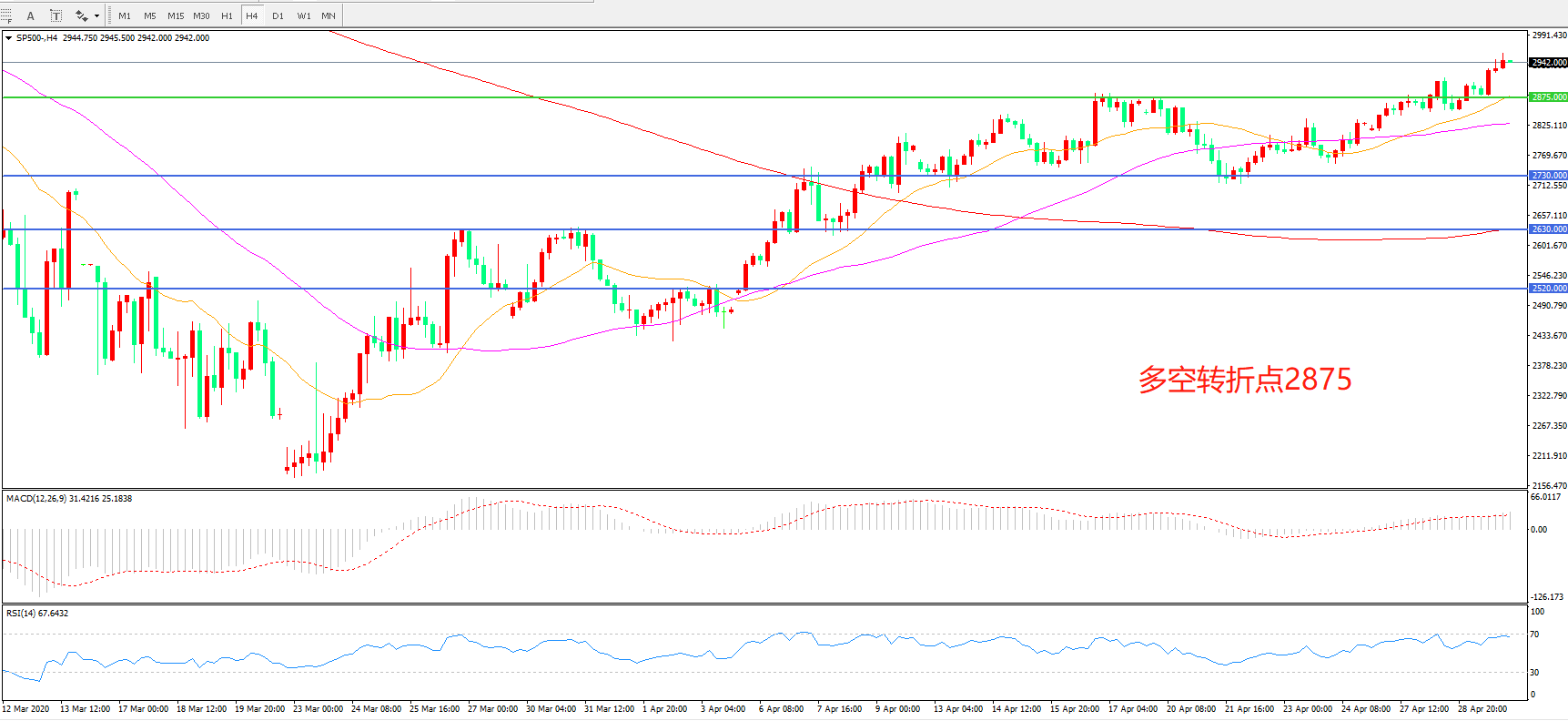 标普500 SP500 4小时图