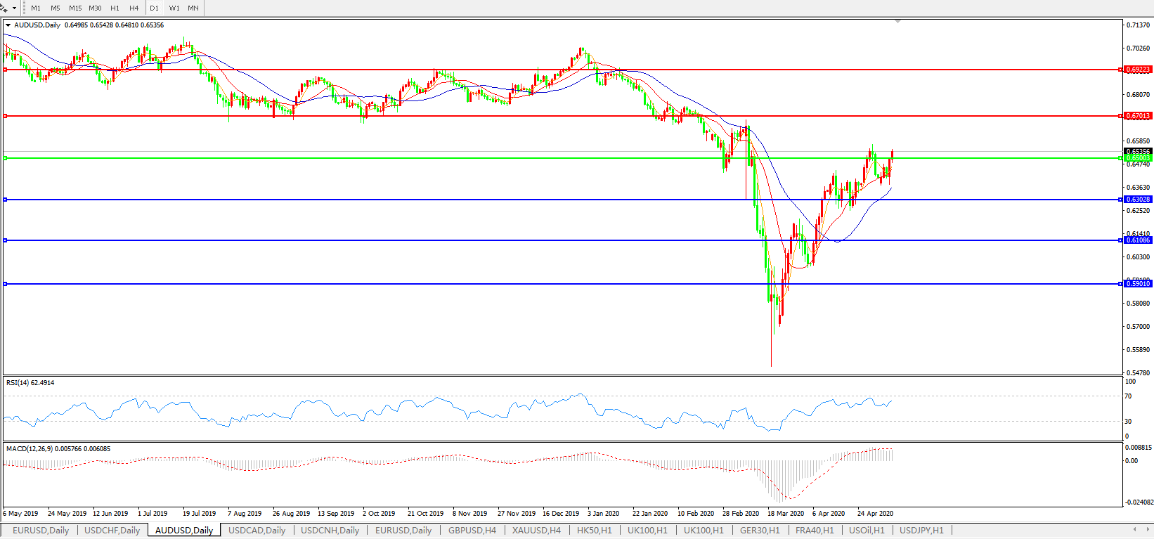 澳元兑美元AUDUSD    日线图: