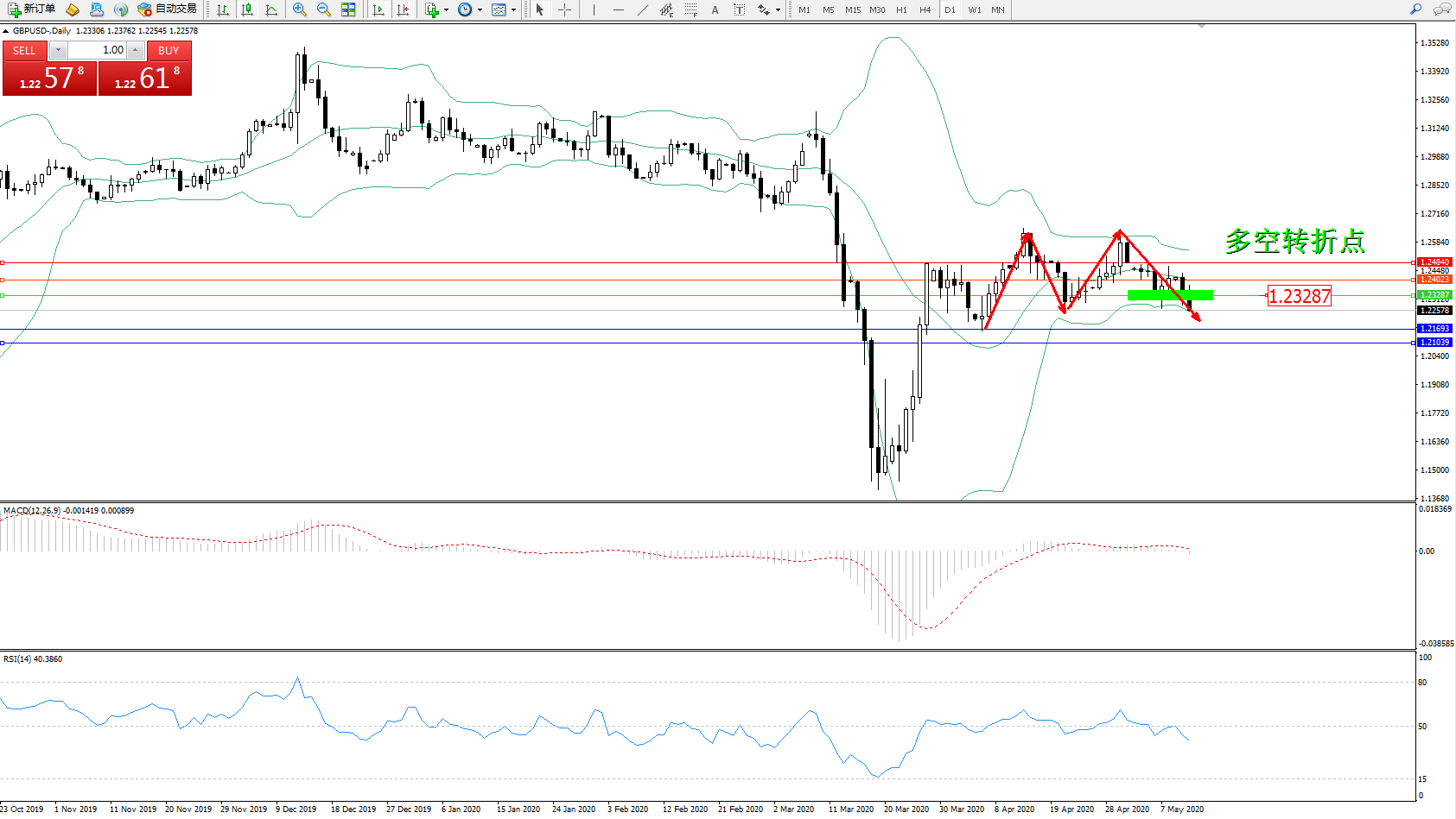 交易策略:1.23287下方看跌,目标1.21693、1.21039