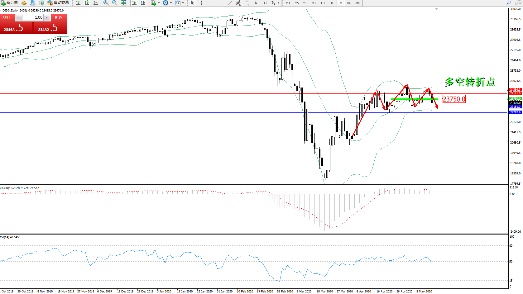 道琼斯指数512日(周二)收盘下跌457.20点,跌幅1.89%,报23764.78点。美股三大指数大幅收跌,航空股、银行股跌幅居前。大型科技股均走低,微软、亚马逊、奈飞、谷歌跌约2%。美国总统特朗普继续呼吁美联储实施负利率政策,美元走低、美债收益率下滑,随着全球主要经济体重启商业与交通基础设施,交易商与投资者都在评估极有可能出现的‘第二波’疫情及其可能造成的经济影响。越来越多的市场人士认为经济复苏步伐将比现在预期的更慢。如果市场共识继续转向经济复苏缓慢,很有可能许多金融市场(尤其是股市)将出现大规模的重新估价,并且大幅回调。