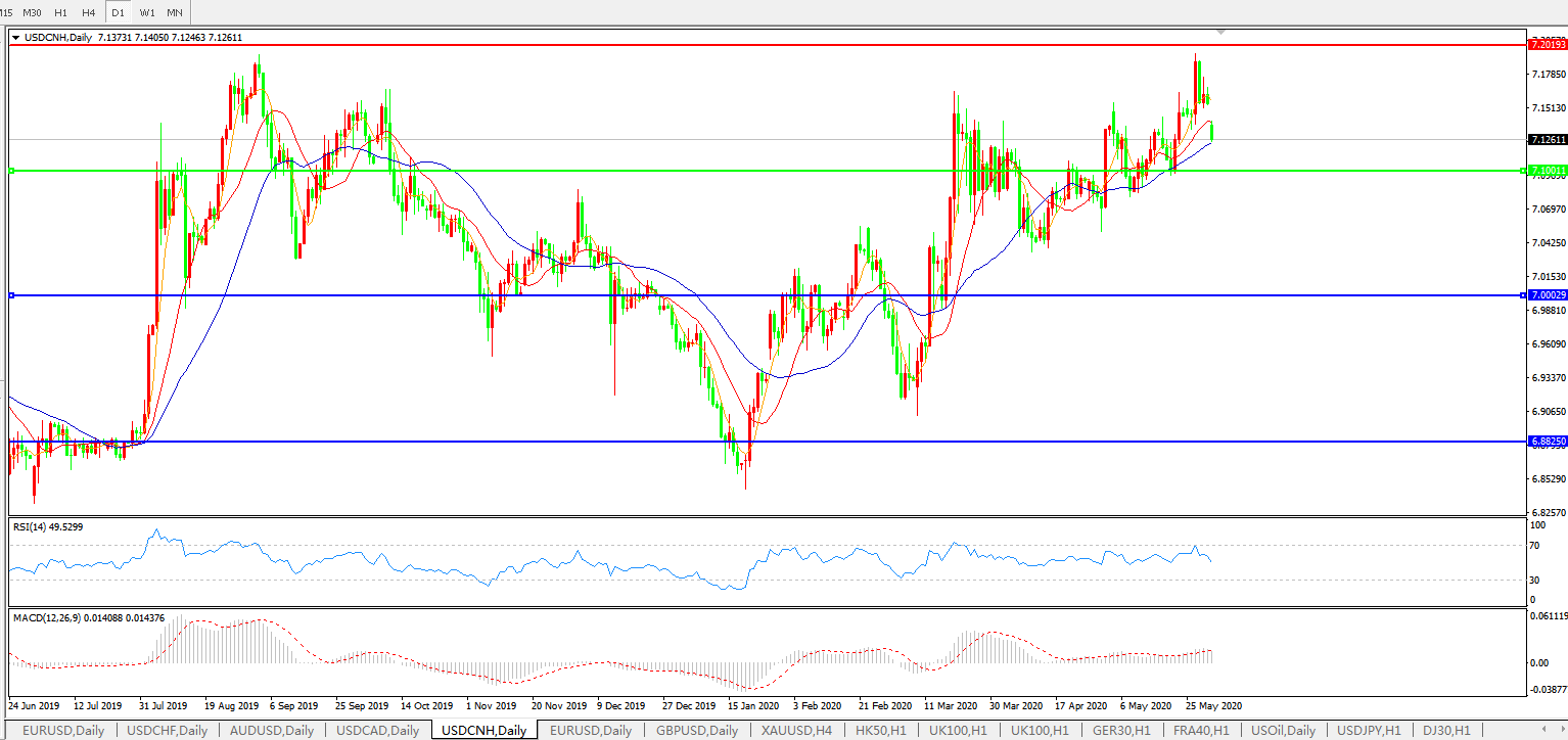交易策略: 在7.1000之上,看涨,目标价位为7.2000,然后为7.3000。