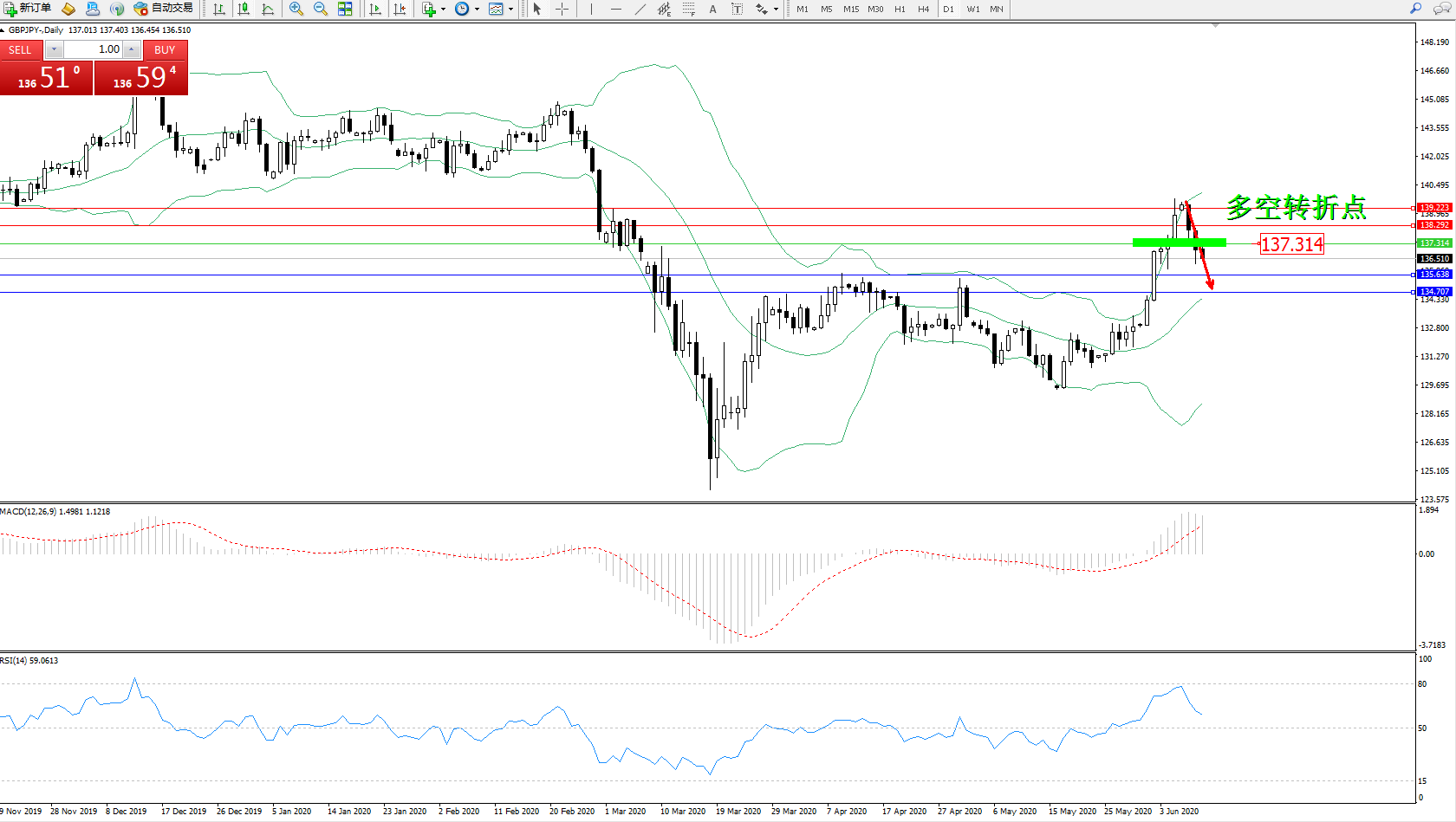 交易策略:137.314上方看涨,目标138.292139.223