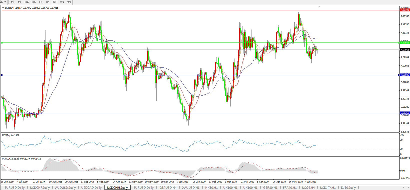 美元兑人民币USDCNH 日线图: