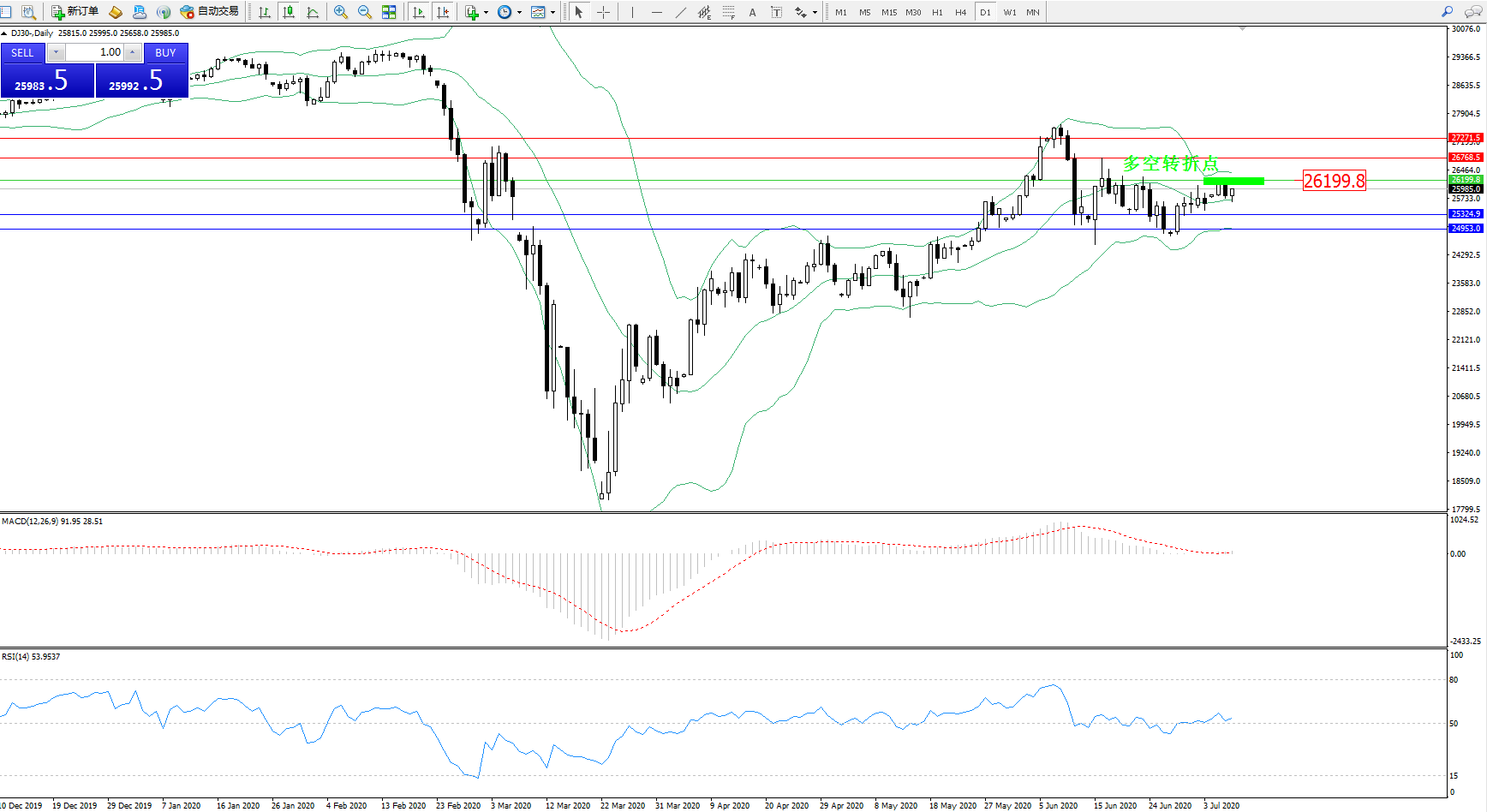 道琼斯指数7月8日(周三)收盘上涨177.10点,涨幅0.68%,报26067.28点。市场对美联储无限量宽松政策持续的预期继续发酵。美国疫情加重的担忧支持美元,道指初步收涨。墨西哥总统洛佩斯:北美需要通过一体化来逆转贸易逆差,之所以作出访问是因为美墨加协定对经济增长来说很重要,北美需要向工人提供合适的薪资,美国和墨西哥需要优先考虑相互理解,墨西哥到美国的移民都是辛勤、诚实的工人,美国总统特朗普对于墨西哥政府展现出理解和尊重,思想上的差异没有导致冲突。