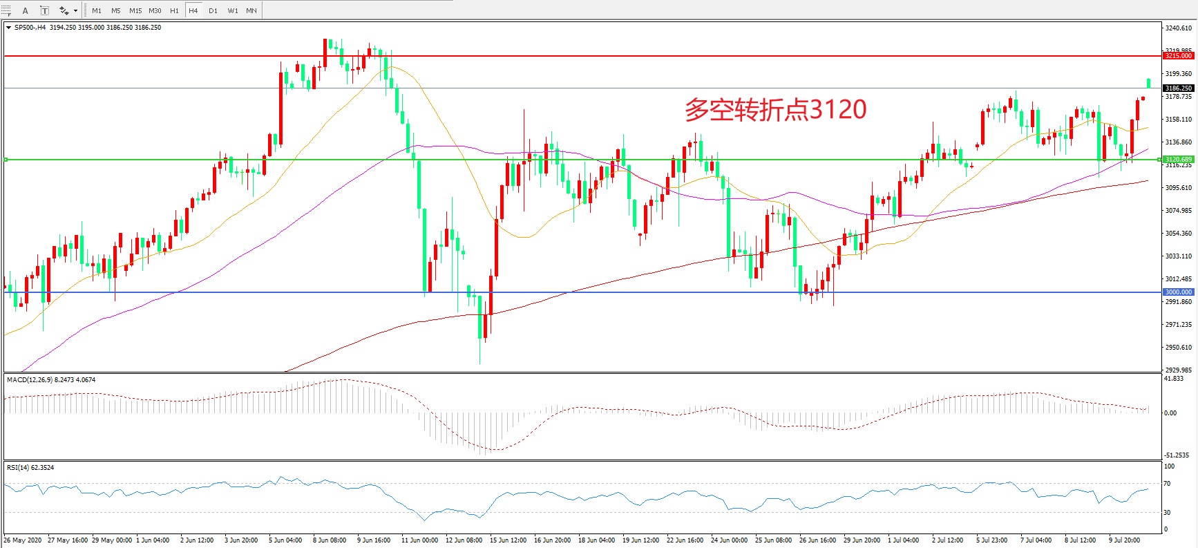 上周五(7月11日),因新冠疫苗利好消息传出缓解了投资者对美国新冠病毒病例创纪录上升的担忧,标普500大幅回升,收报3178.25点。金融类股票领涨全场,其中美国银行股价上涨5.5%,花旗集团股价跳涨6.5%,这些公司将于本周公布财报,为第二季财报季开锣。
