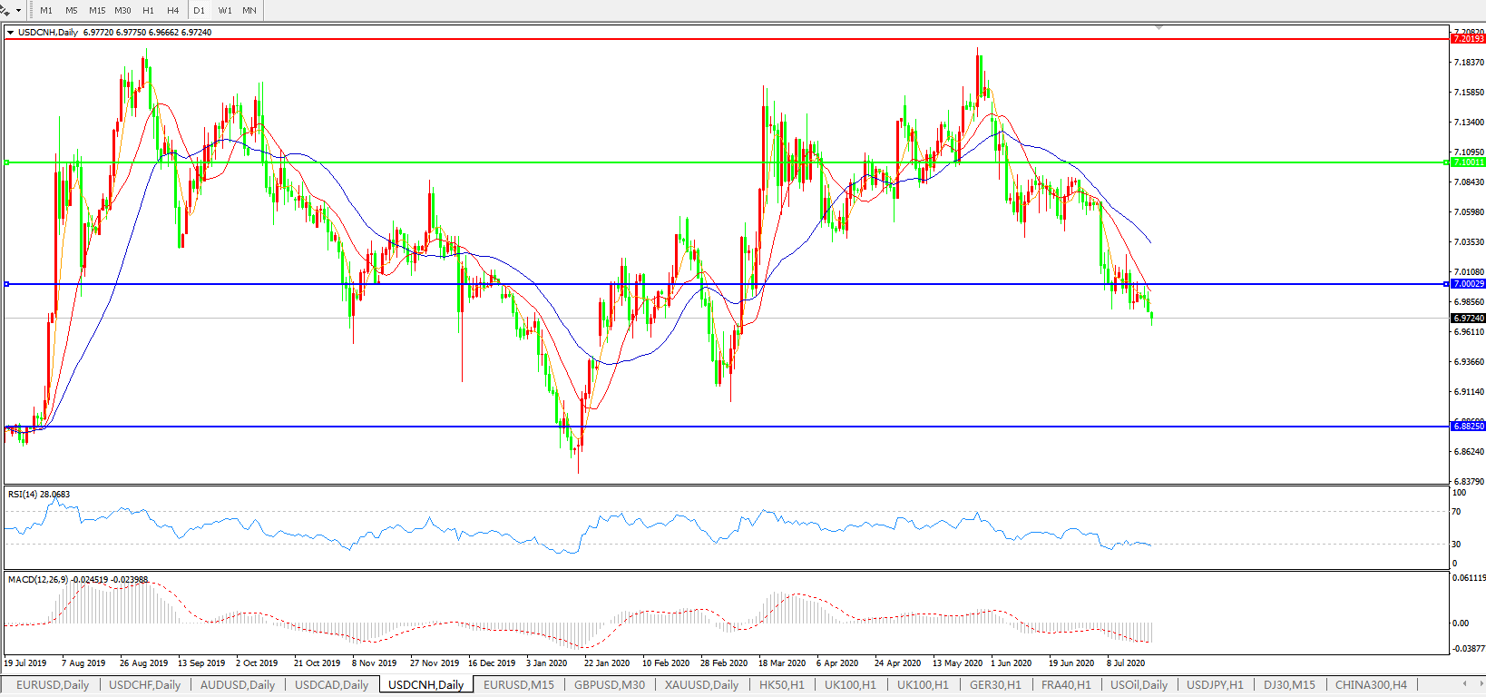 交易策略: 在7.1000之下,看跌,目标价位为7.0000,然后为6.8820。