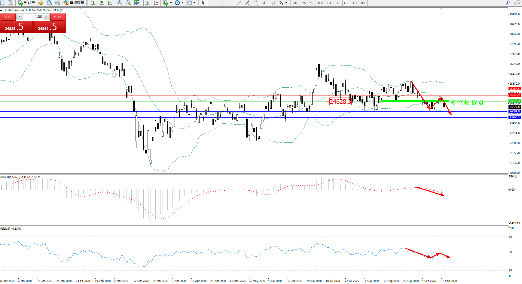 香港恒生指数9月17日(周四)收盘下跌384.78点,跌幅1.56%,报24340.85点;港股主要指数大幅收跌,市场情绪降至低点。恒生科技指数跌1.73%。盘面上,大型科技股全线下挫,小米大跌6.37%,京东跌3.8%,美团跌3%,阿里、腾讯均下跌;比亚迪股份再升近6%,5日累计涨幅达35%。今日南下资金逆势净流入25.4亿港元,大市成交额为1176亿港元。全球第二大闪存芯片制造商铠侠(原东芝储存)在周四警告称,美国对华为的严格限制可能导致内存芯片供过于求并压低市场价格。最近两个月全球资金配置将处于观察阶段,股市震荡整理概率大,但恰是立足中长期逢低布局中国核心资产的良机。11月港股核心资产有望迎来基本面和估值的双击。投资机会包括:一是金融地产周期核心资产的价值重估;二是科技成长股长期看好,下半年围绕业绩而分化;三是消费医药是长期业绩确定的赛道,但需要根据成长性和性价比精选个股;四是战略性看多黄金等贵金属。