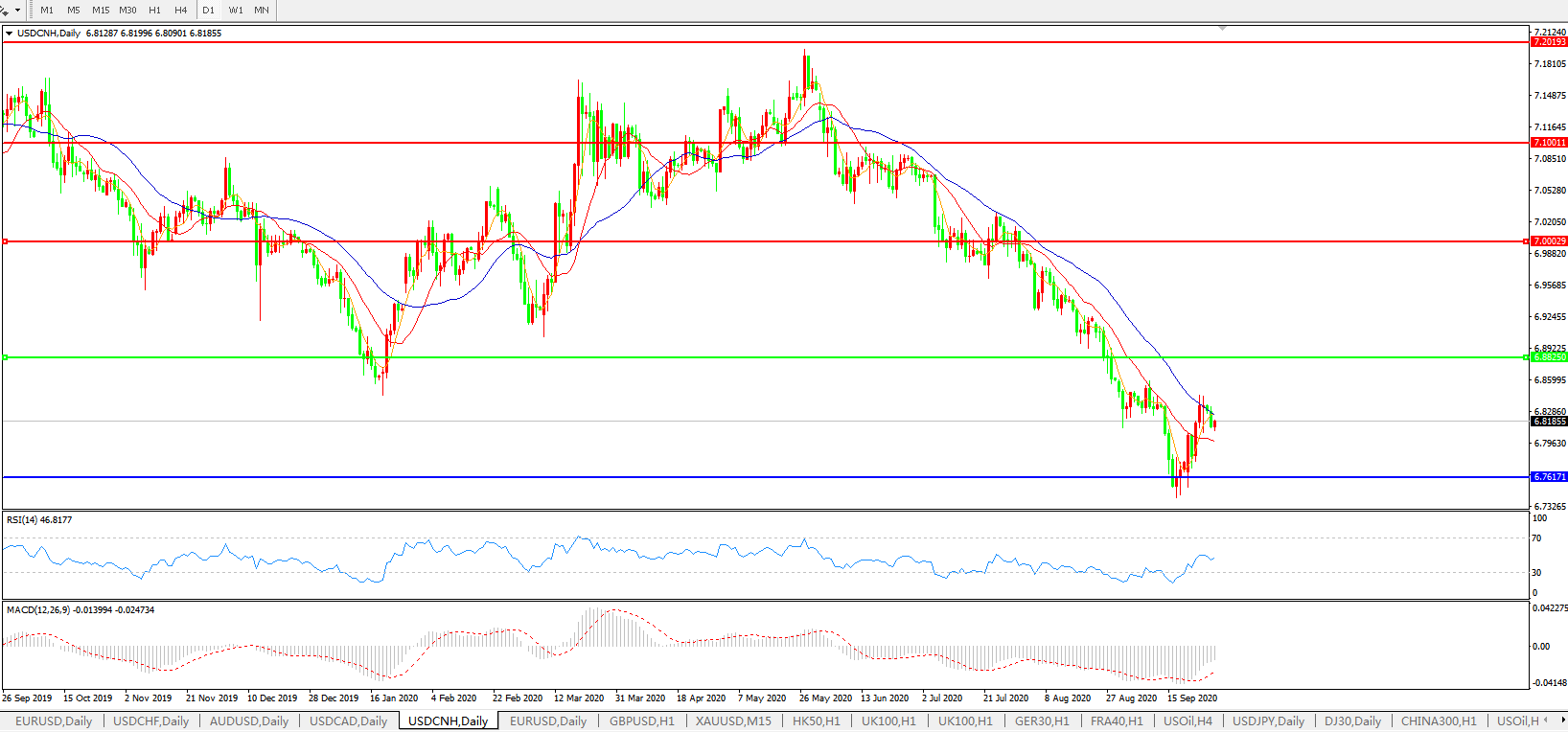 美元兑人民币USDCNH 日线图: