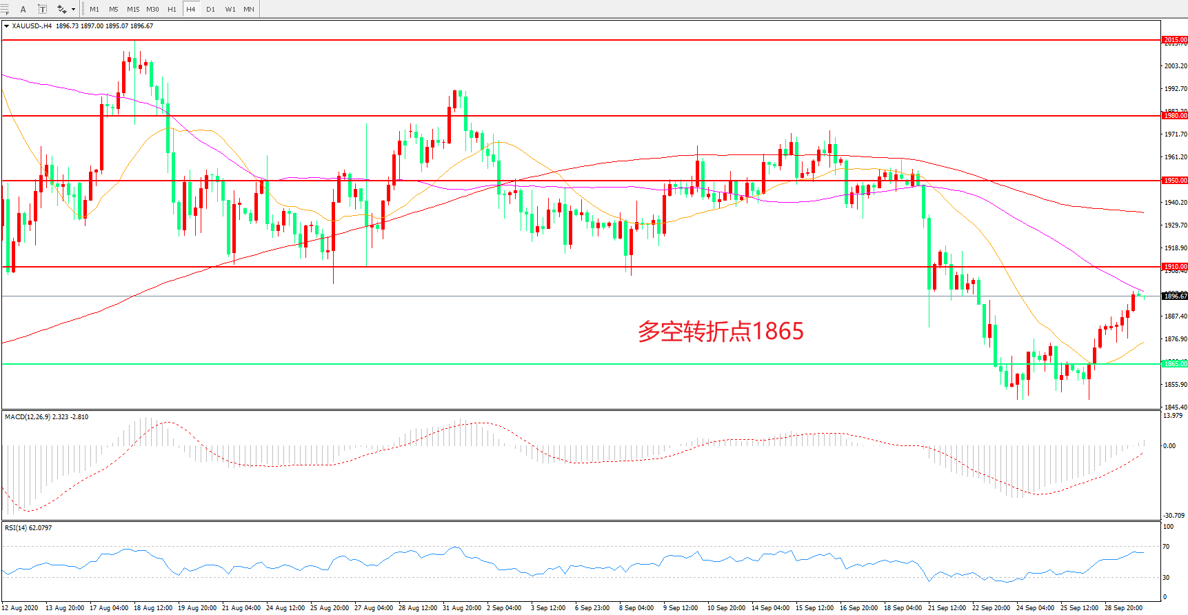 交易策略:在1865.00之上看涨,目标1910.00   1950.00