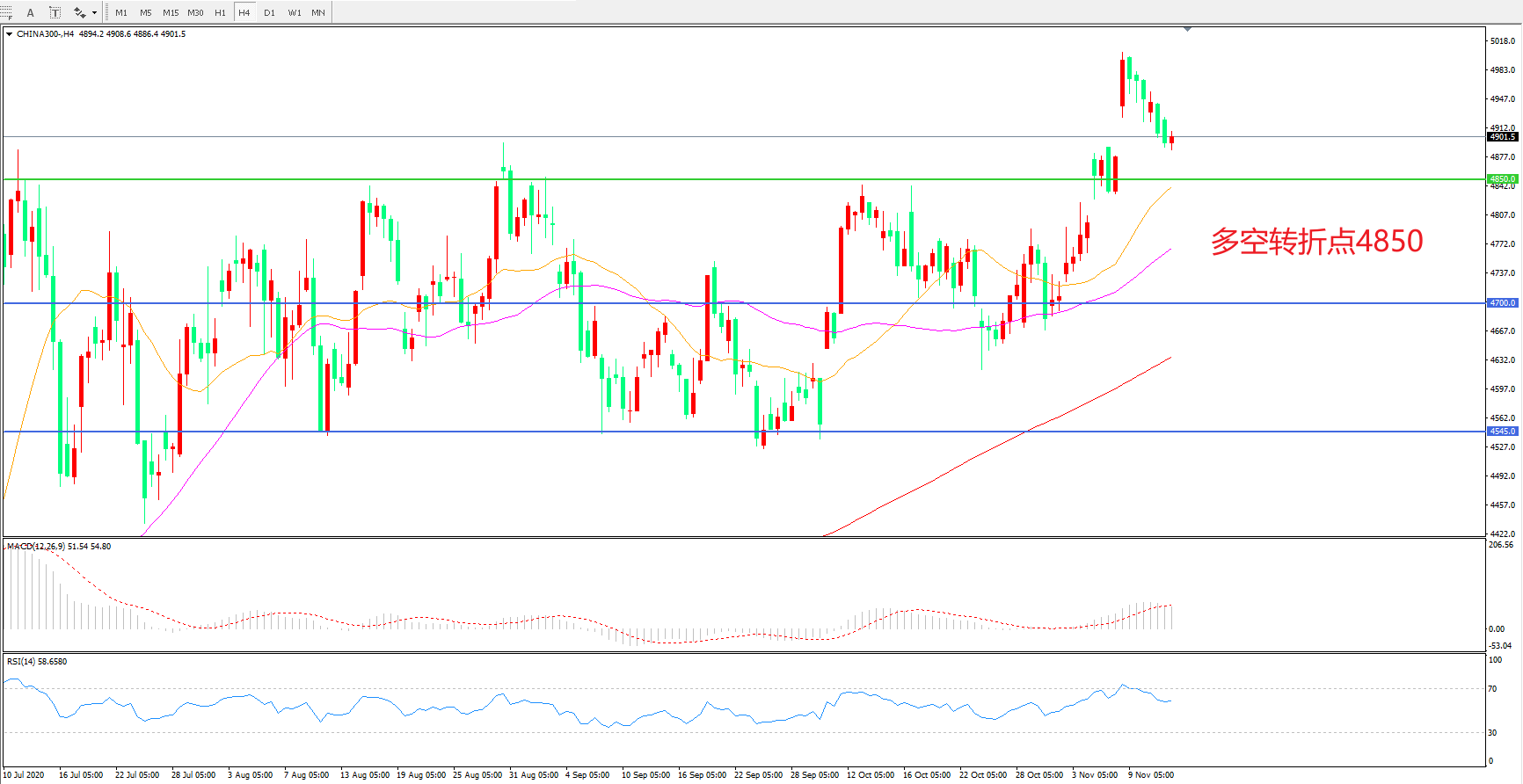 交易策略:在4850.00之上看涨,目标5000.00       5150.00