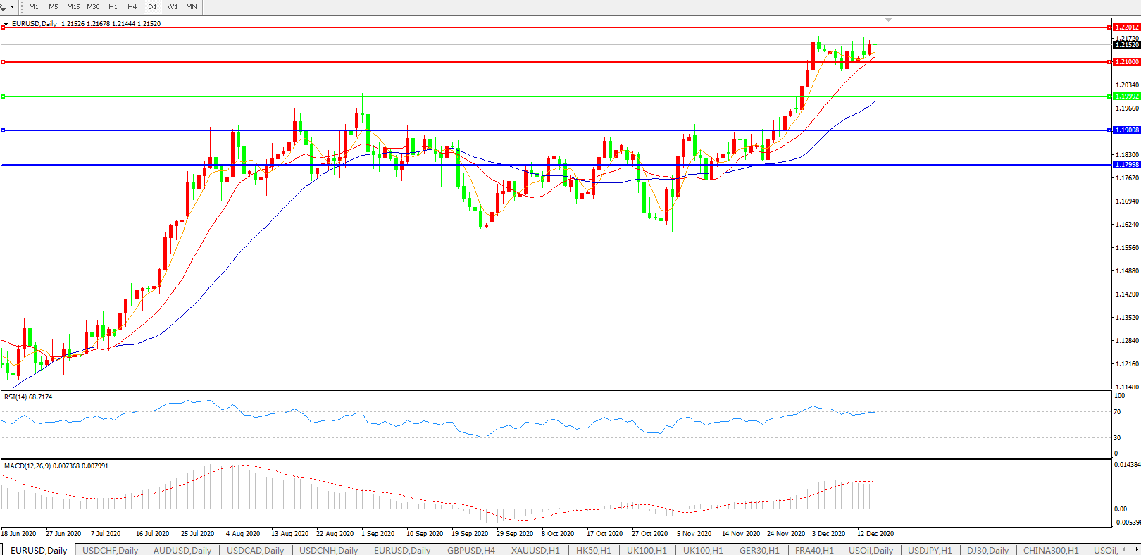 技术面简析:日图均线整体呈多头排列,汇价高位延续强势,MACD运行于0轴上方但量能0轴上小幅缩量 ,RSI高位逐步走缓,预计短期汇价大概率将在整理后进一步上行。