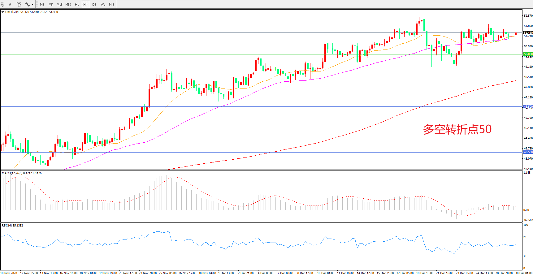 周二(12月29日),市场对经济复苏带来的用油需求保持乐观,风险情绪回暖,但新冠疫情发展和OPEC+增产政策仍可能制约油价反弹,多空双方博弈加剧,布伦特原油延续高位震荡,收报51.22美元/桶。就目前的市场而言,利多和利空的因素都处于酝酿阶段,因此短期内市场仍处于相对混沌的表现。