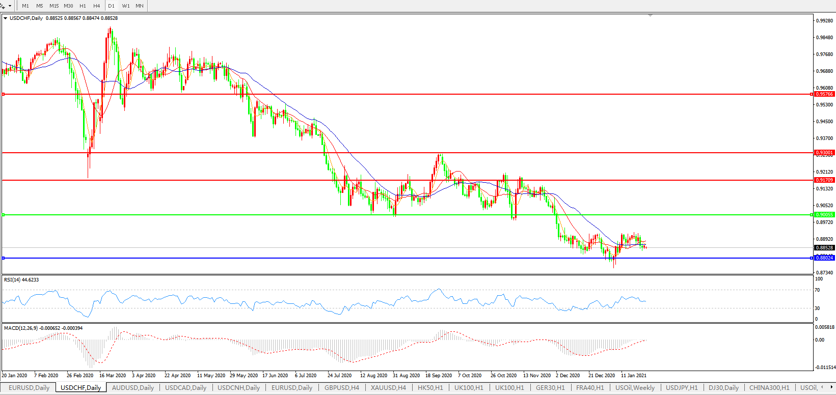 金融及经济风险意愿降低,美元兑瑞郎维持弱势