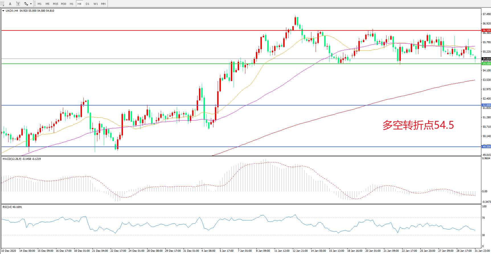 交易策略:  在54.50之上看涨,目标56.50    60.00