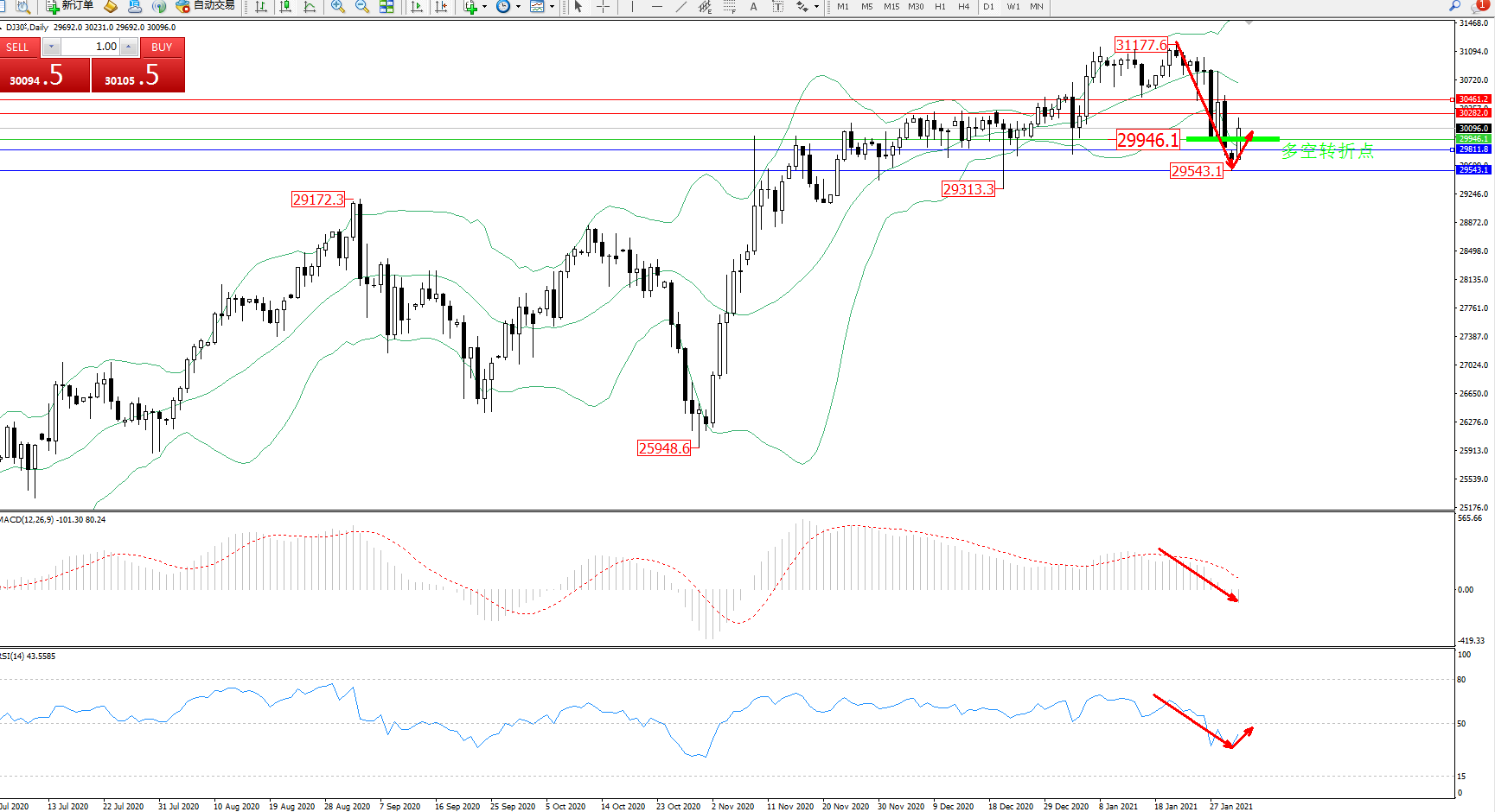 多空转折点:29946