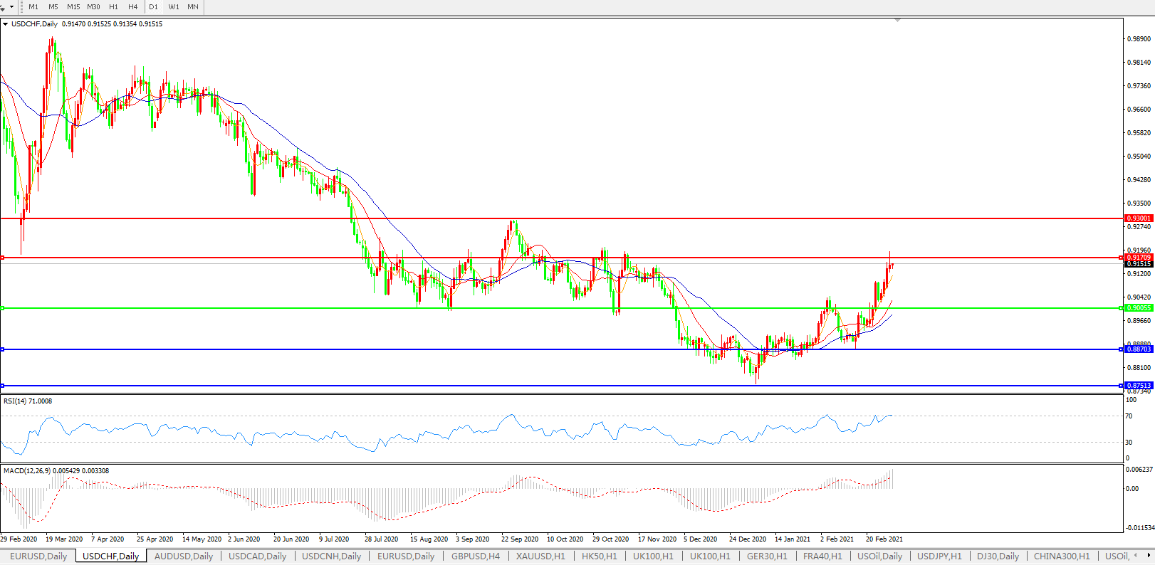 交易策略:0.9040上方看涨,目标0.9170、0.9300