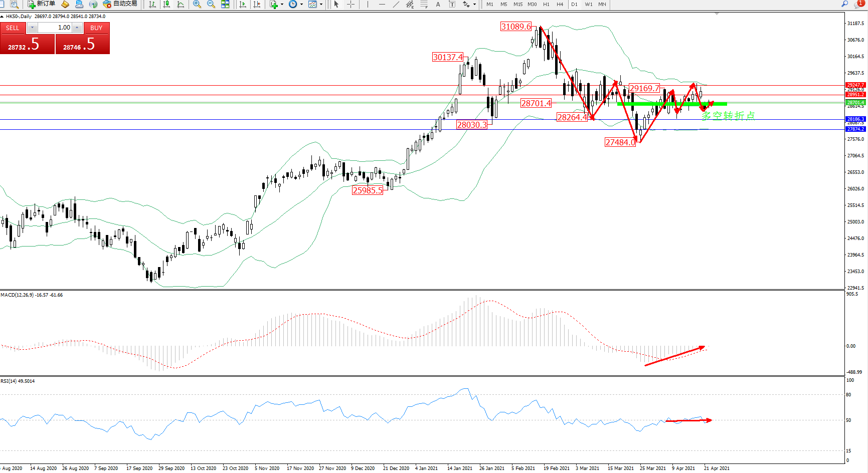 香港恒生指数4月22日(周四)收盘上涨133.42点,涨幅0.47%,报28755.34点;港股三大指数震荡收涨,恒生科技指数涨1.16%报8279点。大型科技股回暖,美团涨3.5%,腾讯涨2%,京东、网易涨超1%;燃气板块全天领跌,汽车股重挫,长城汽车大跌逾12%,大金融股(银行、保险、券商)普遍走低。大市成交额为1545亿港元,南下资金净流入超60亿港元。港股日报:中国平安一季度对华夏幸福相关投资资产减值计提额为182亿元,火币科技推出追踪比特币和以太坊走势的加密货币基金。南向资金今日净流入58.93亿港元。港股通(沪)方面,中国移动、长城汽车净买入居前,分别获净买入6.21亿港元、4.85亿港元。港股通(深)方面,安踏体育、中国移动净买入居前,分别获净买入6.00亿港元、4.41亿港元。