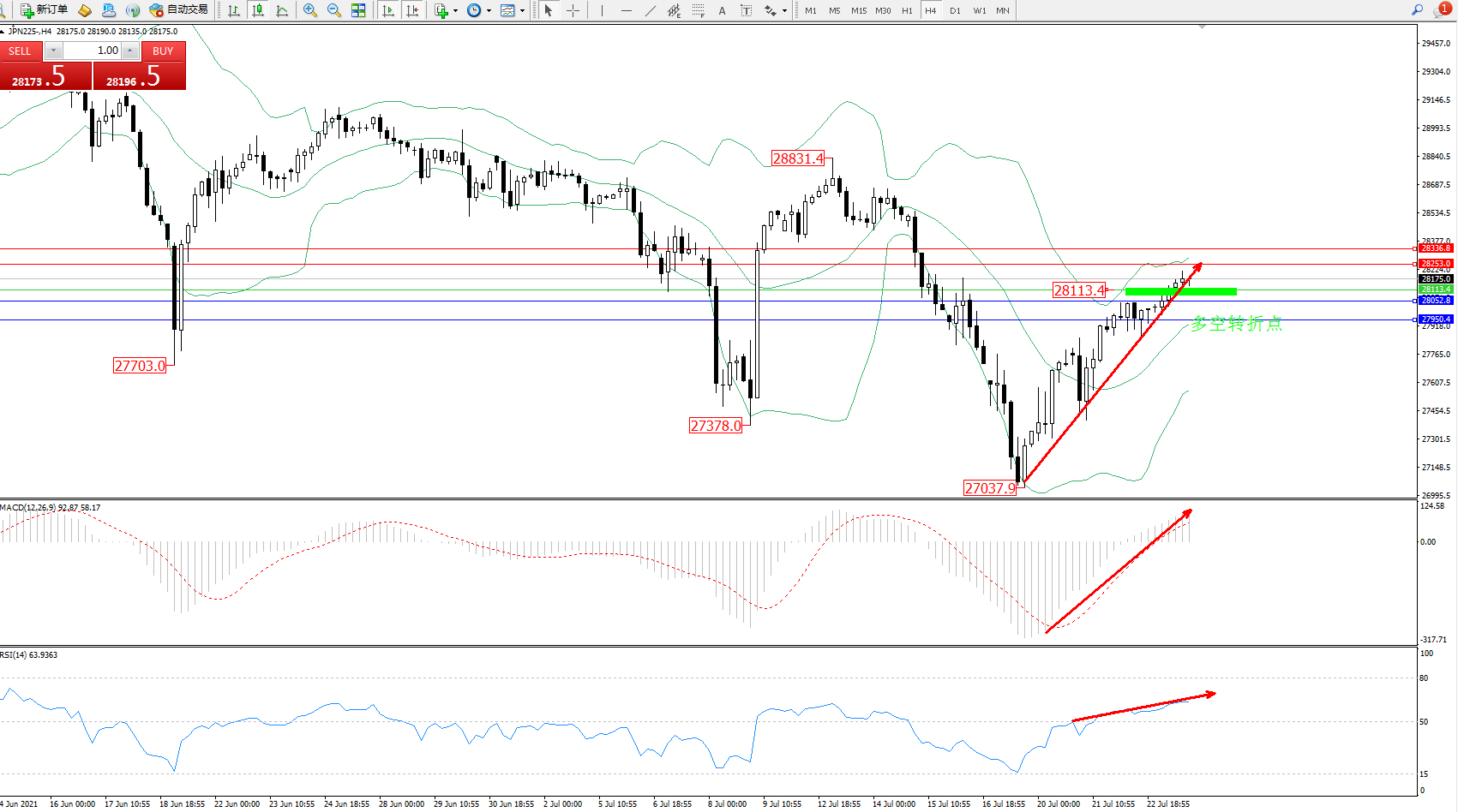 日经225指数7月21日(周三)收盘上涨135.34点,涨幅0.49%,报27523.50点。日本金融市场因恰逢东京奥运会开幕而自本周四起休市,直至周一方恢复交易,市场瞩目焦点已经转向奥运会能否顺利举行的前景,据日本共同社消息,日本天皇22日在皇宫宫殿与国际奥委会(IOC)主席巴赫等人会面并表示:“我认为,对传染病采取万全对策情况下的大会运营绝非易事。向大家的努力深表敬意。” 巴赫还表示向日本天皇再次保证,“将尽最大努力不给日本民众带来危险”。 报道还提到,日本天皇担任东京奥运会和残奥会的名誉总裁,将出席23日的开幕式。