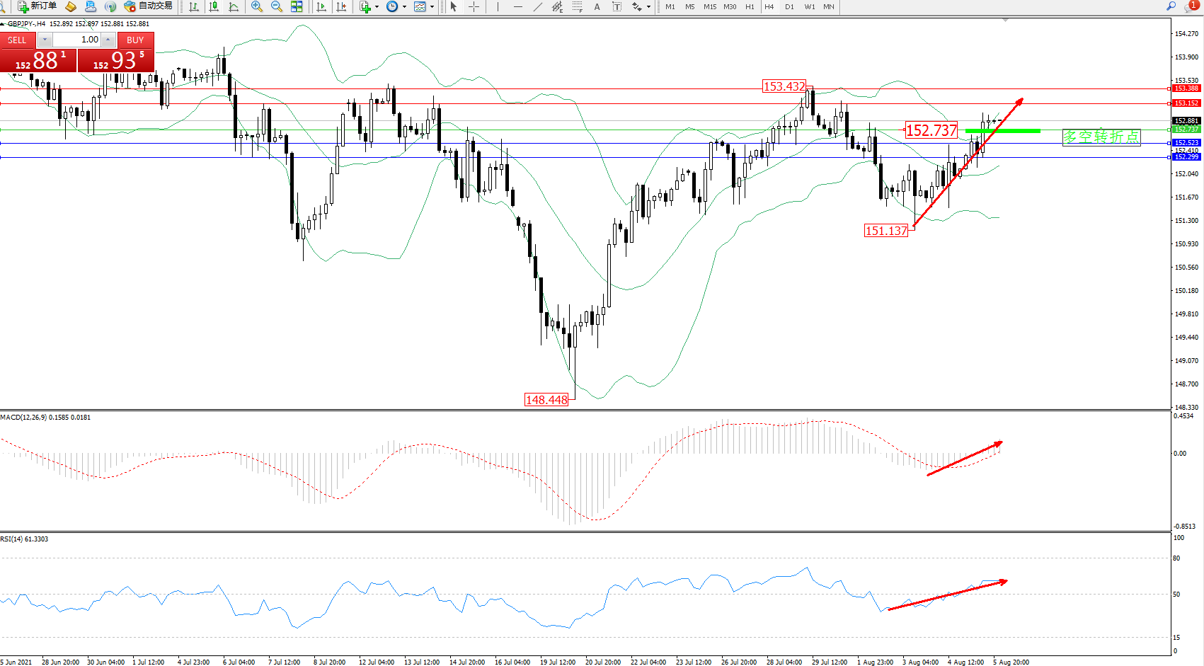 技术点评:多头动力维持震荡向上拉升态势良好,高位触及布林带指标上轨附近节点后不断向上移动中,布林带指标呈缓慢张口走势态势良好,多头动力短期未见止步迹象,MACD指标维持多头动力不断向上移动,RSI指标处于50均衡线上方持续上移中;