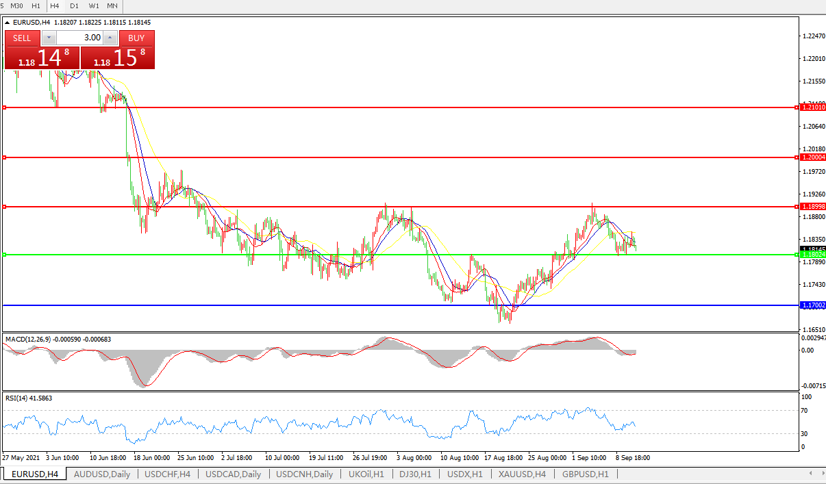 备选策略:1.1800下方看跌,目标1.1700、1.1600