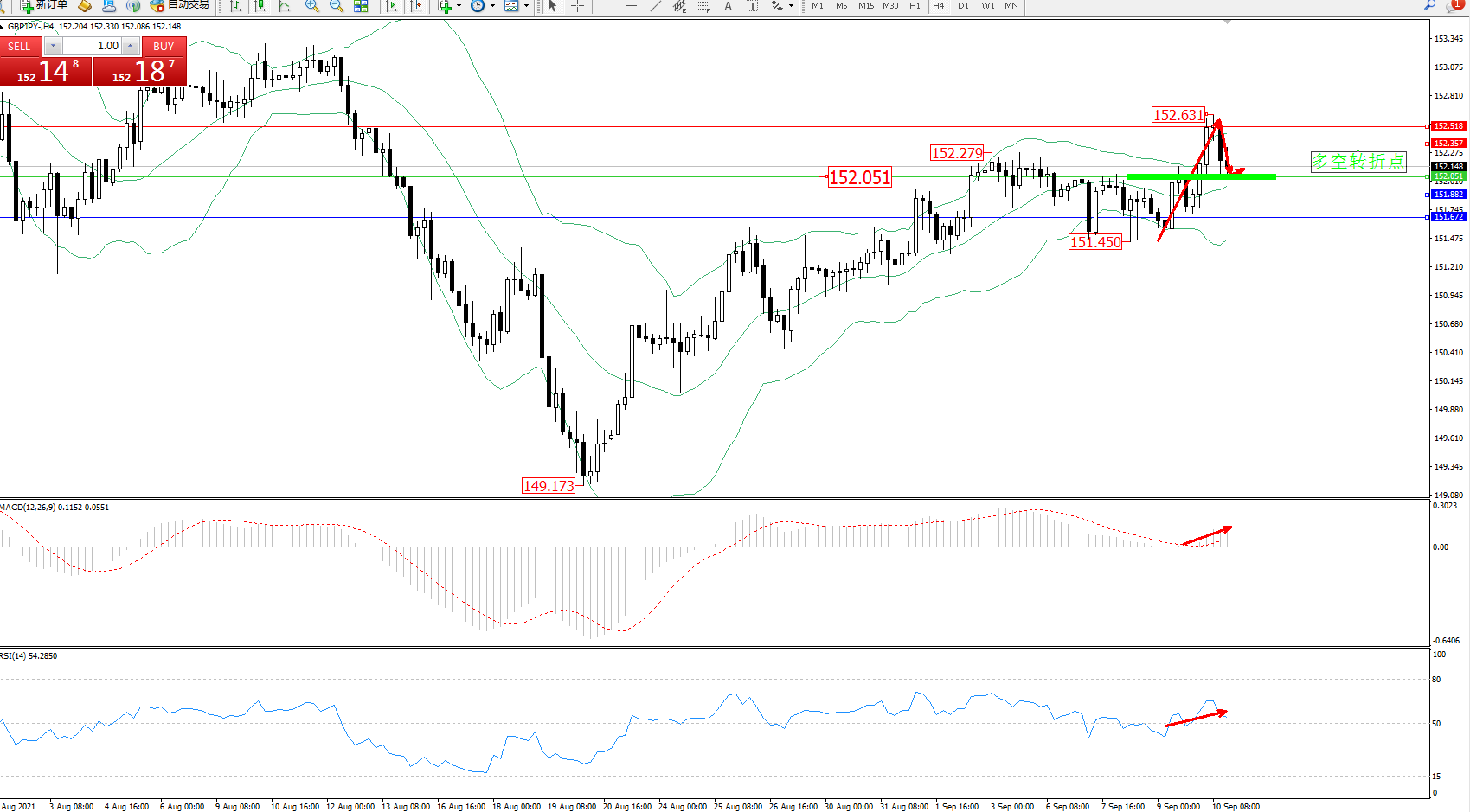 交易策略:152.051上方看涨,目标152.357、152.518