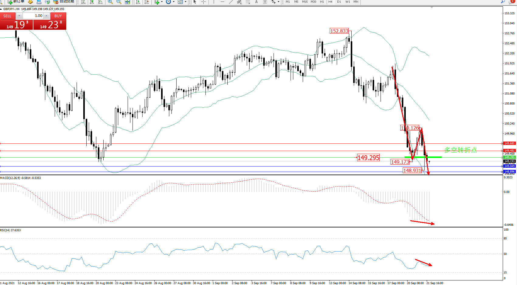 技术点评:空头动力延续布林带指标下轨附近持续震荡下行,低位虽有短暂反转拉升走势,但下行趋势态势良好,抵达148.931位置后开始整理,布林带指标呈收口走势后持续向下移动中,MACD指标处于空头区域维持整理平移中,RSI指标处于空头区域持续震荡中;