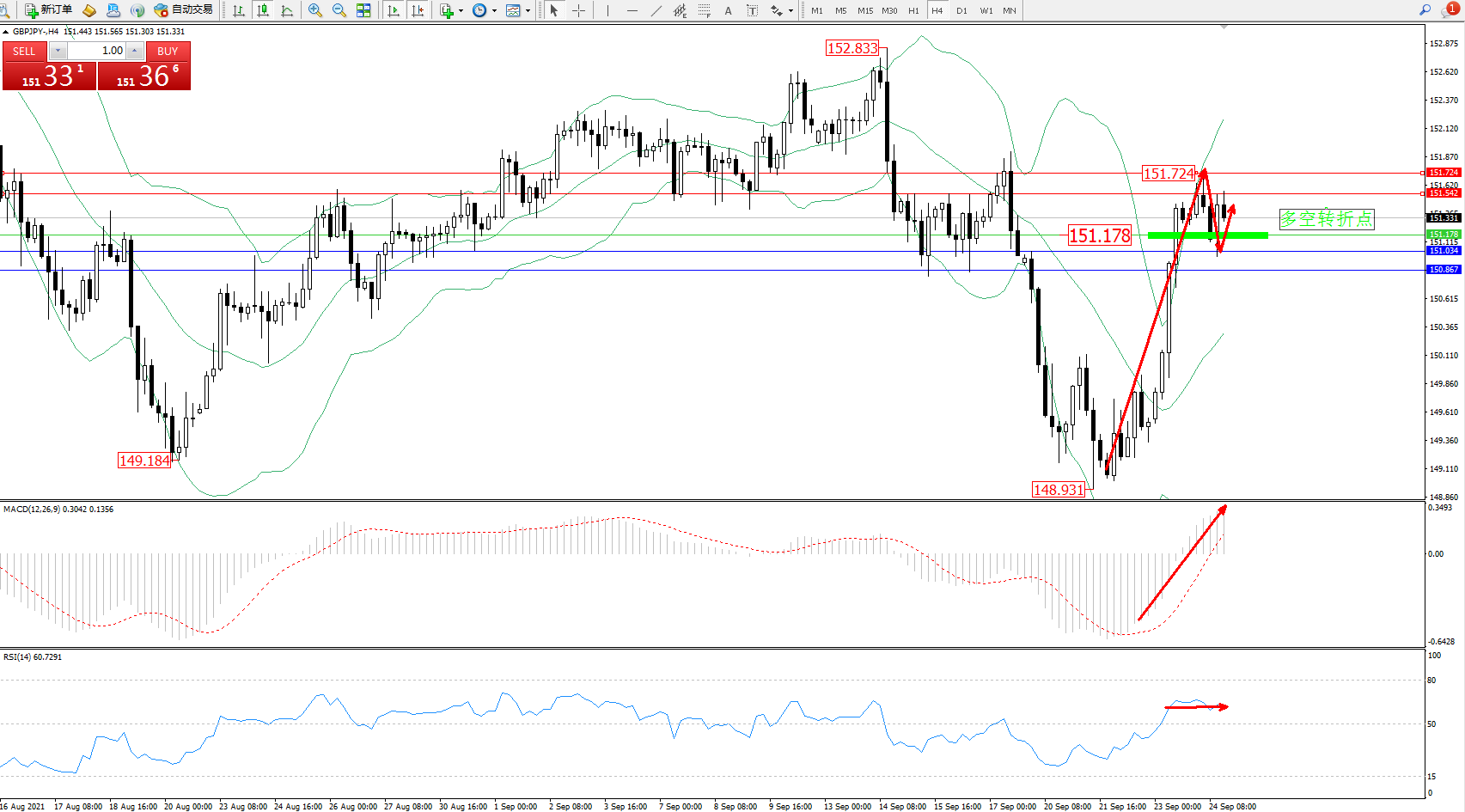 技术点评:低位多头动力强势拉升至151.724位置遇阻短暂震荡回撤,但上扬趋势走势良好,多头后续潜力持续,布林带指标呈张口走势中,MACD指标处于多头区域持续震荡上移,RSI指标处于多头区域维持整理平移;