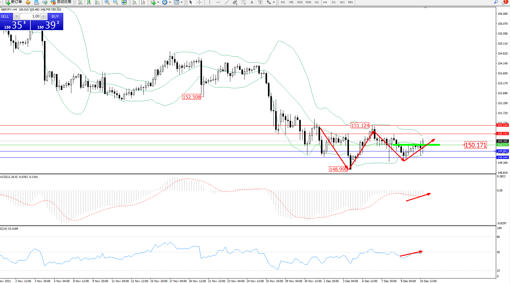 时间维持在布林带指标通道内波幅空间收窄,布林带指标呈收口走势中,短期多头动力有维持继续上移迹象,MACD指标处于0轴线下方空头区域维持弱势徘徊中,RSI指标处于空头区域窄幅整理缓慢上移至50均衡线附近徘徊;