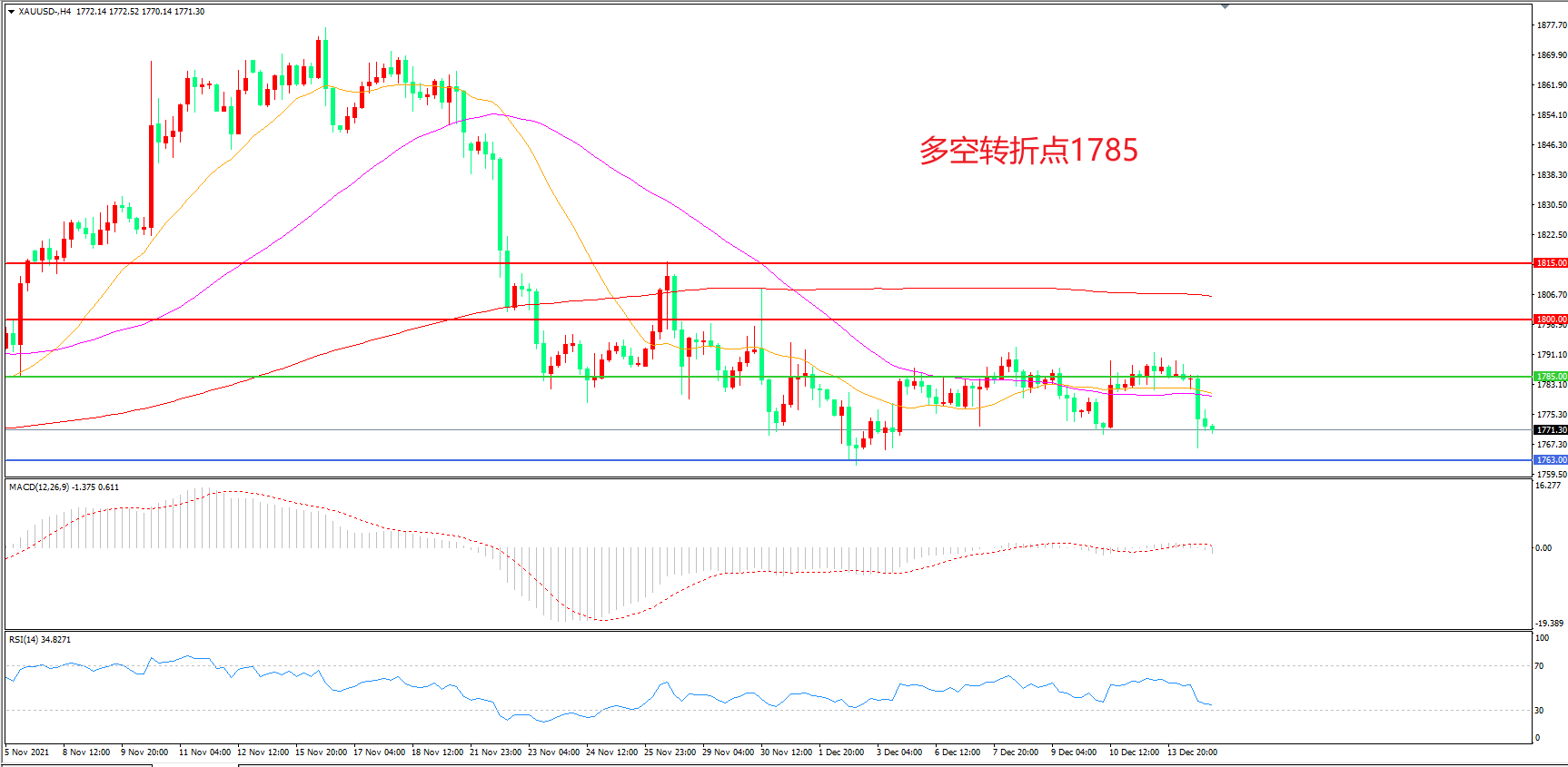 周二(12月14日),美联储议息会议前前公布的美国11月PPI超预期同比增长9.6%,创有纪录以来最高同比增速,通胀指标爆表导致加速缩债的预期升温,现货黄金大幅回落,收报1770.39美元/盎司。目前投资者屏息等待各大央行的会议结果,金价随时可能迎来巨幅波动。