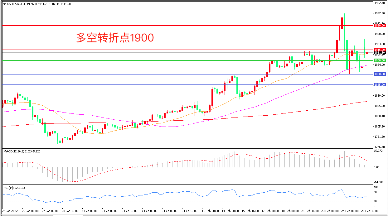 交易策略:在1900.00之上看涨,目标1915.00 1930.00