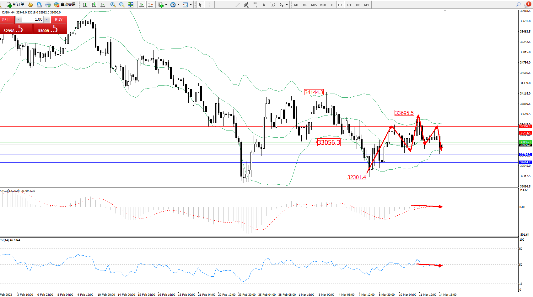 道琼斯指数3月14日(周一)收盘上涨0.59点,涨幅0.00%,报32944.78点;美股收盘,道指接近平收,交易员们已经提高了对美联储今年可能收紧政策幅度的预期,周一曾完全消化7次25个基点加息的预期。 上次隔夜指数掉期市场消化如此多的加息预期还是在2月11日,因此前一天公布的1月美国消费者价格指数(CPI)升幅高于预期,促使投资者押注美联储会采取更加鹰派的政策。? 与今年12月政策会议相关的掉期利率周一攀升至1.83%,比当前有效联邦基金利率0.08%高出175个基点。这相当于七次每次25个基点的加息。不过美联储已经表示,如有必要,可能会增加每次加息的幅度。